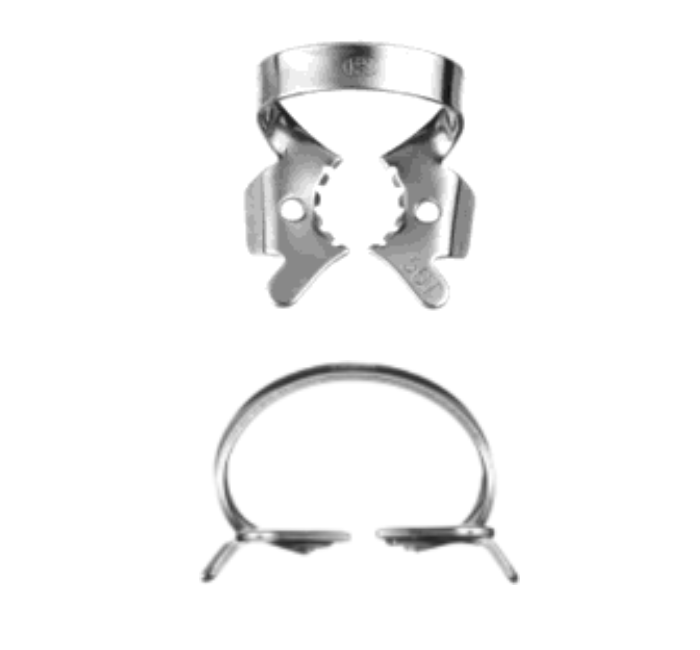 №56Т полірована сталь Кламп для молярів верхньої і нижньої щелепи, з діаметром і щічками середнього розміру. Має виражену увігнутість щічок і горизонтально розташовані малі крила